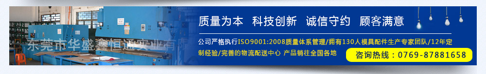 東莞市華盛鑫恒通實業(yè)有限公司成立于2003年08月,總占地面積6200㎡,現(xiàn)有員工130人(其中本科以上技術研發(fā)人員8人),是一家致力于各種行業(yè)清洗架、鋼化架、模組頂針測試治具的專業(yè)非標夾、治具設計制造商。公司擁有CNC加工中心(北京精雕)、沖床、剪板機、折彎機、線切割機、氬弧焊機、點焊機、碰焊機、車床、銑床、磨床、鉆床、攻牙機、超聲波清洗機等不同種類不同規(guī)格、10T-200T等各類加工設備90臺。公司嚴格執(zhí)行ISO9001:2008質量體系管理,品質檢測儀器分別有:現(xiàn)代化高端檢查設備投影儀(2.5次元檢測儀)、測硬器、鹽霧測試機若干。等經(jīng)過長期的摸索,擁有一批高素質的生產(chǎn)隊伍及專業(yè)的工程技術人員,設計各種配套設施。  |